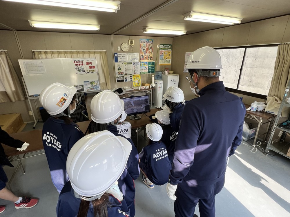 高知県建設業協会高知支部様主催のもと高知市立青柳中学校の2年生を対象に現場体験会を行いました。