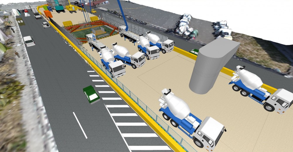 当日は AM5:00コンクリートポンプ車搬入・据付、AM5:30朝礼開始、AM5:45生コン品質試験実施、