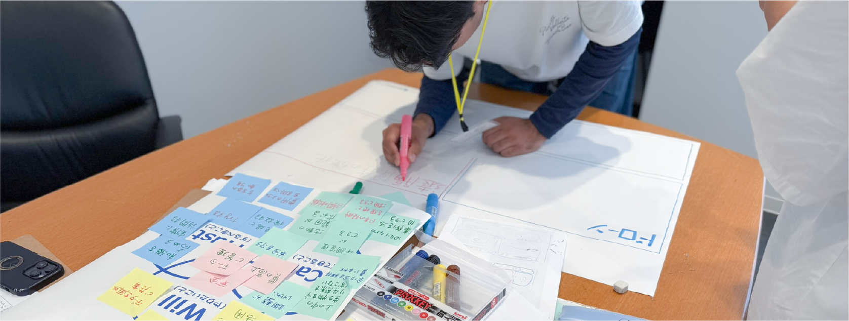 模造紙や付箋を使って自由に書き出しながら、感じたことを言葉にする時間です。
