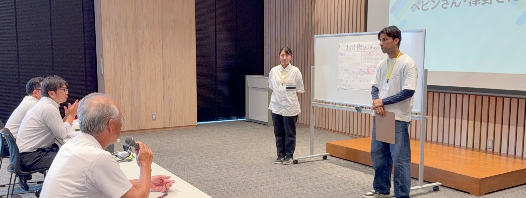 最後はグループごとに発表し、1日目の学びをまとめて、2日目の現場体験に向けた視点を整えていきます。