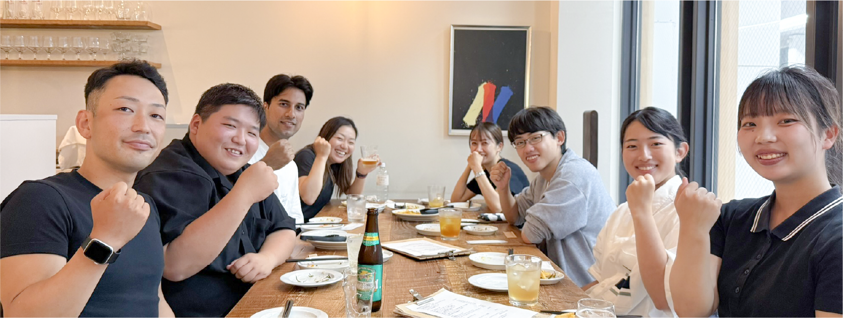 3日間の締めくくりは、弊社が運営するレストラン「European kitchen MIRA」での懇親会です! 美味しい料理を囲み、会場はプログラム中以上の盛り上がりを見せました。 仕事の話はもちろん、プライベートな話題まで花が咲き、インターンシップとはまたひと味違う「福留開発の温かさ」を感じられる素敵な時間となりました。