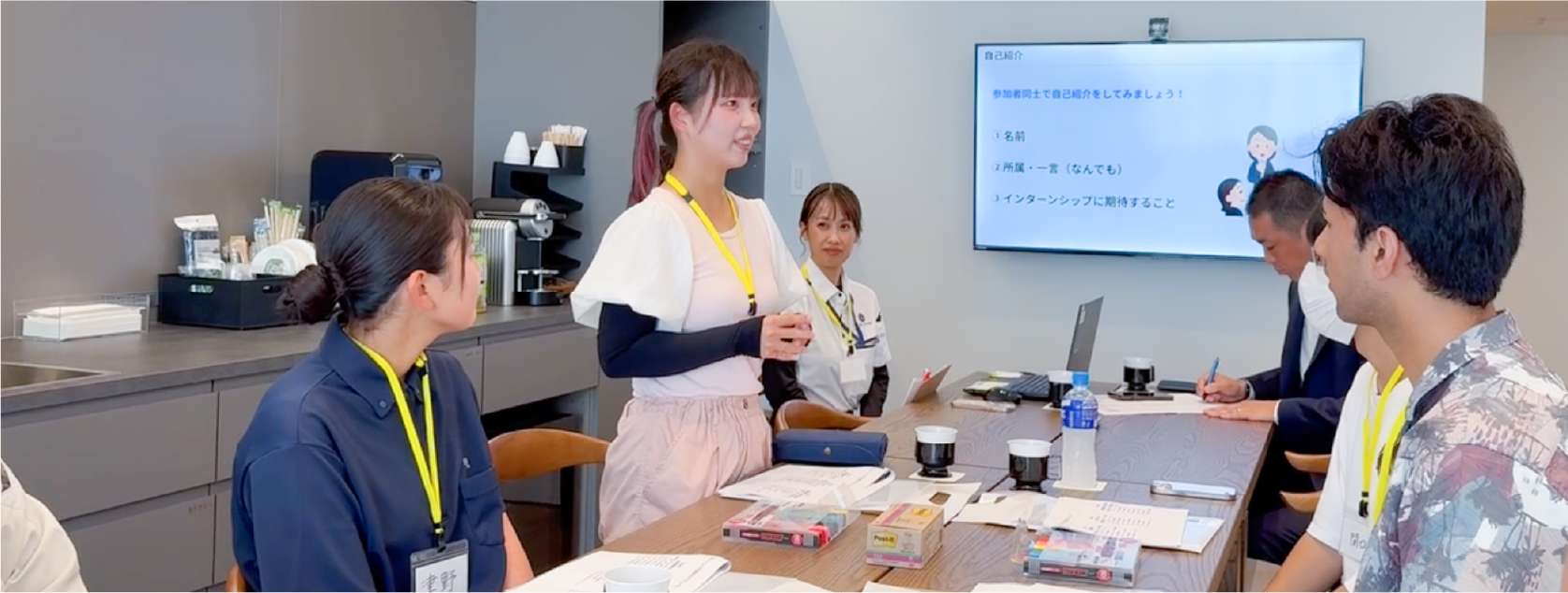 まずはインターン全体の流れを紹介し、参加者同士で簡単な自己紹介を行います。「なぜ参加したのか」「どんなことを知りたいか」を共有しながら、このインターンをどう過ごすかをお伝えします。