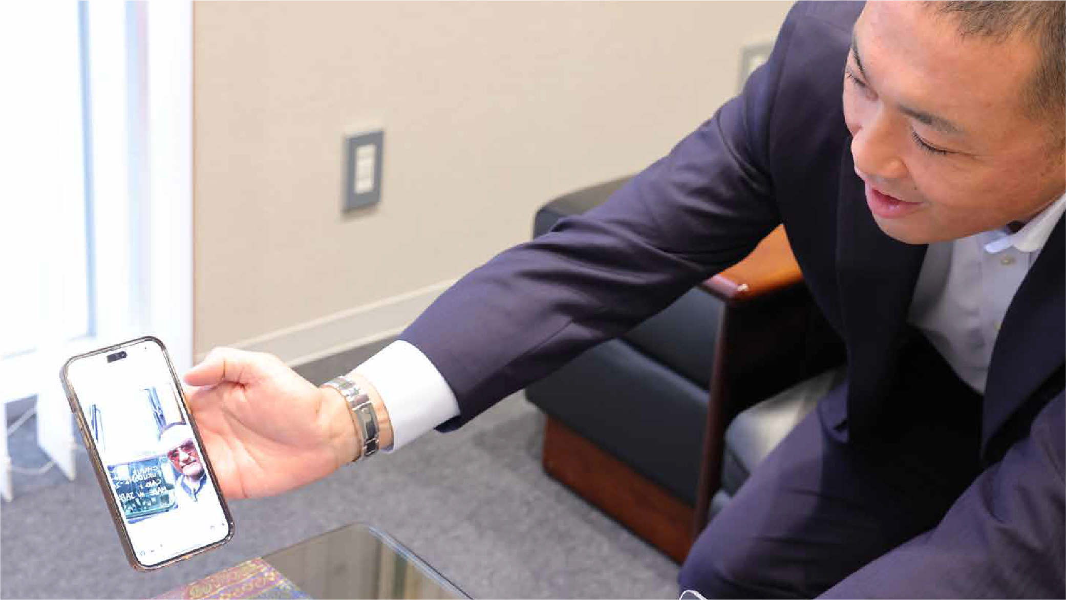 ↑ミクロネシアの現地の人とのチャットのやり取りを見せる大場社長
